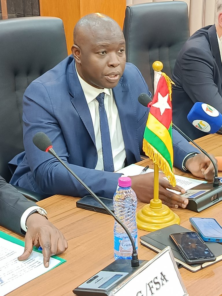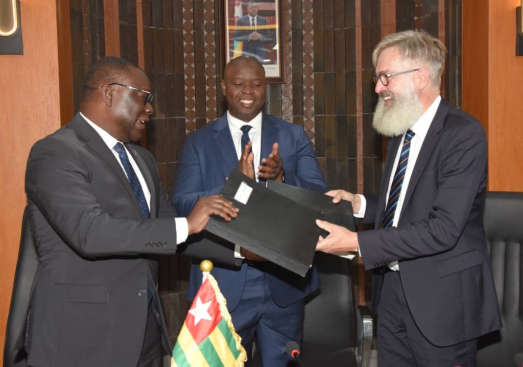 Monsieur Abdourahmane Diallo, Directeur Général du Fonds de Solidarité Africain (FSA), et Monsieur Werner Grub, Directeur Général du Fonds Danois pour l’Exportation et l’Investissement (EIFO), ont apposé leurs signatures au bas des documents et procédé aux échanges de parapheurs en présence du Secrétaire Général du Ministère de l’Économie et des Finances, Monsieur Stéphane AKAYA Tchasso Kpowbie, représentant Son Excellence Monsieur le Ministre de l’Économie et des Finances, Essowè Georges Barcola.